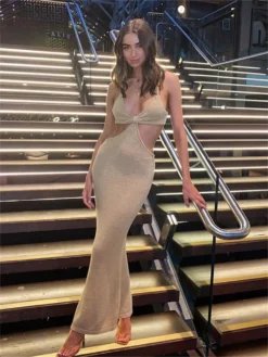 Women Backless Knitted Dress Sleeveless