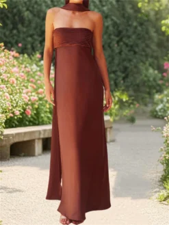 Women’s Elegant Long Satin Tube Dress