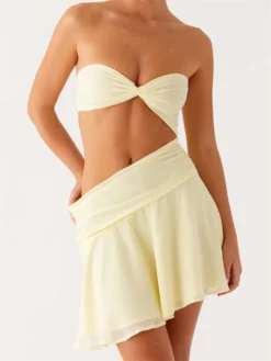 Cutout waist, twisted bust and ruched, strapless, bandage and backless, mini length; Strapless tube dress; Casual dresses for women; Cute dresses for women that will enhance your fashion taste
