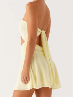 Women Strapless Tube Dress Summer Casual Cutout Waist Backless Ruched Mini Dress for Cocktail Party Beach Streetwear